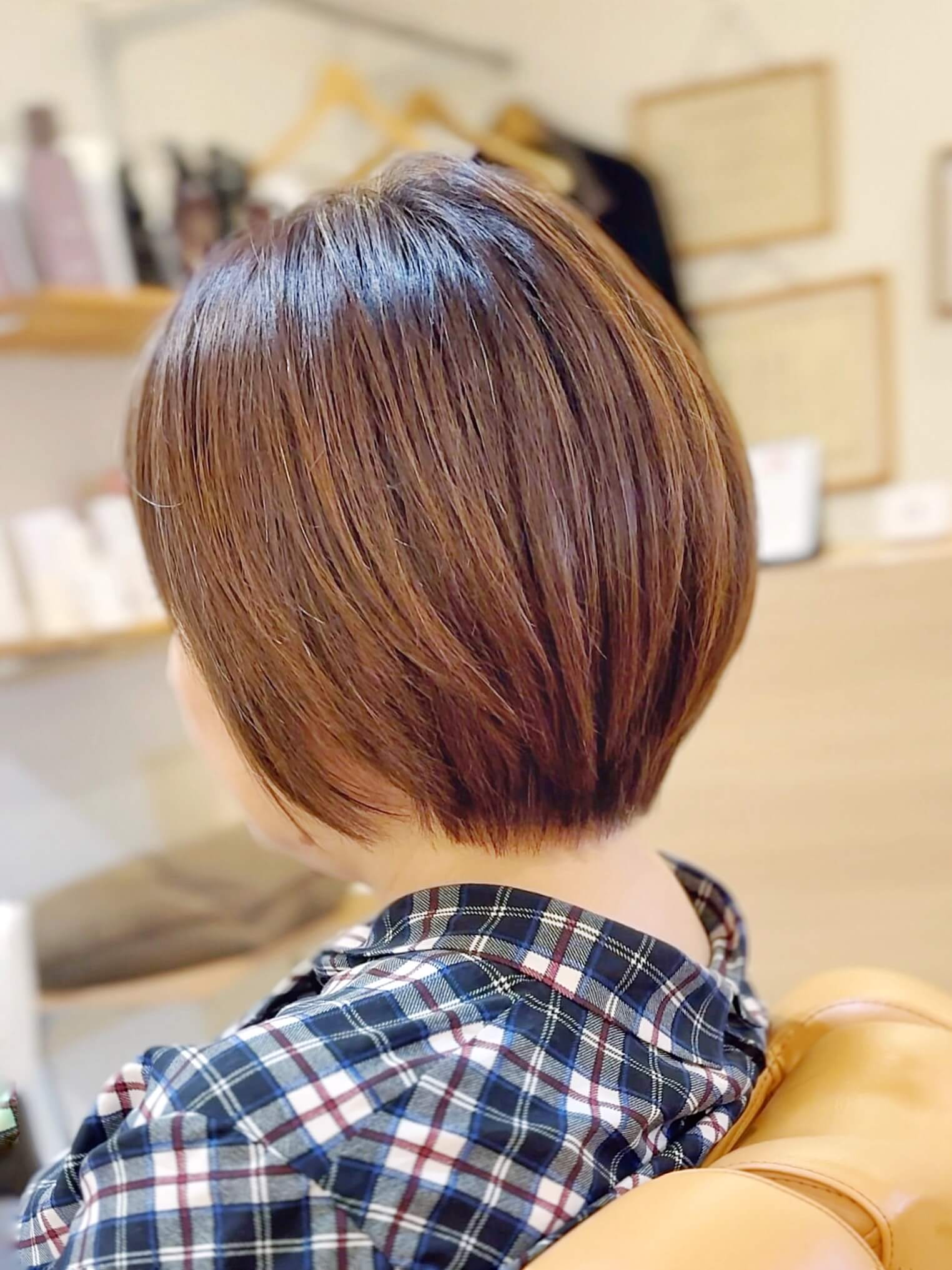 「襟足を短くすると浮いちゃうから…」生えグセが悩みでショートにすることを諦めていましたが、襟足を刈り上げてスッキリ短くしたことで、生えグセが気にならなくなり、念願のショートにチェンジ!