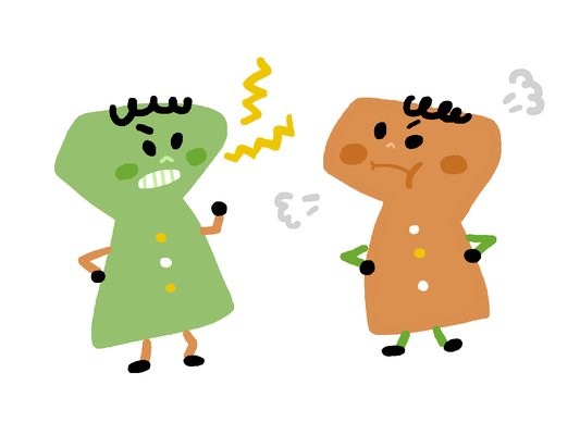 店員さん同士が小声で言い合いをしてるようだ。