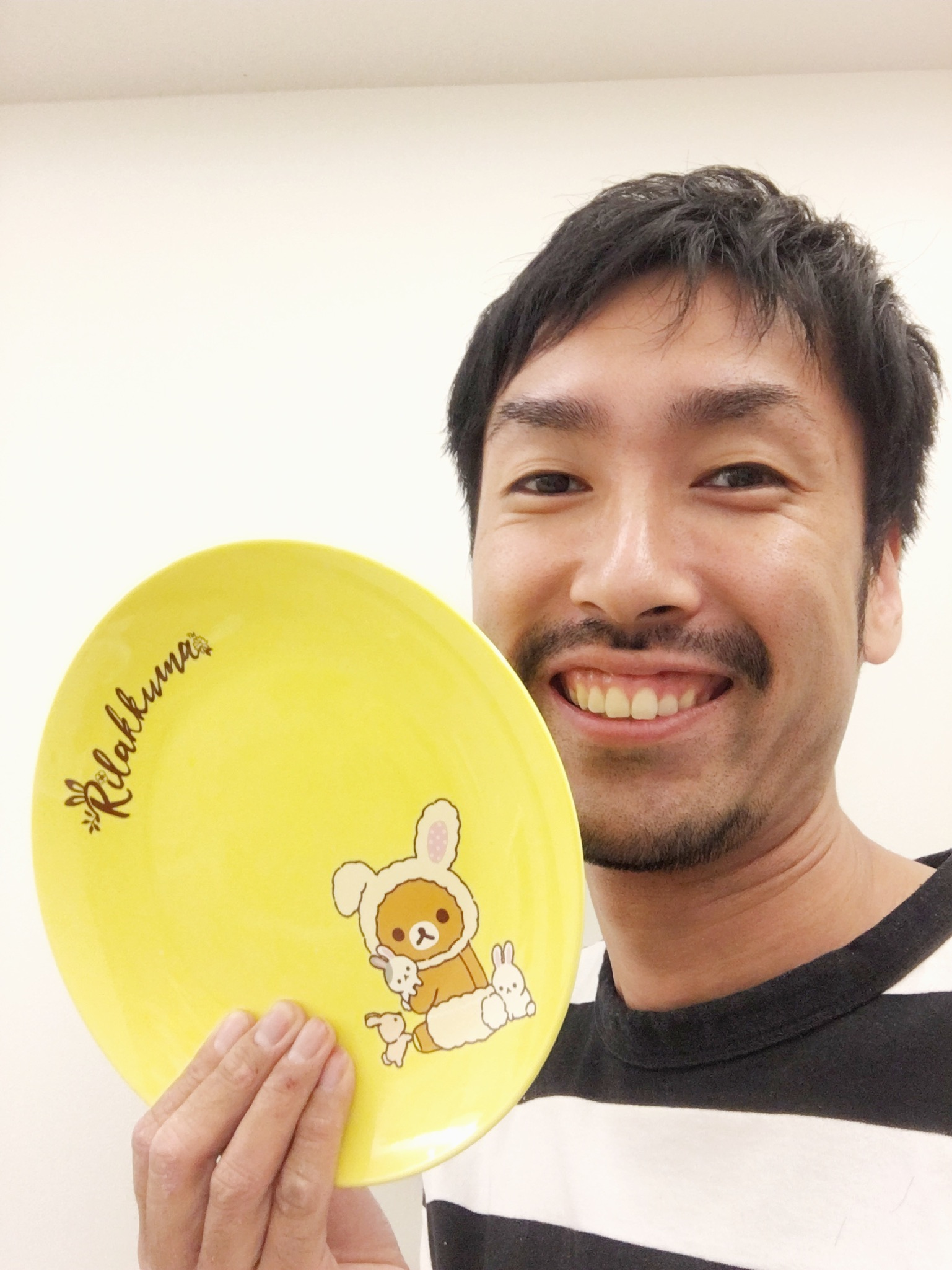 短髪のヒゲの男がこんな可愛いお皿持って笑顔で自撮りするって、