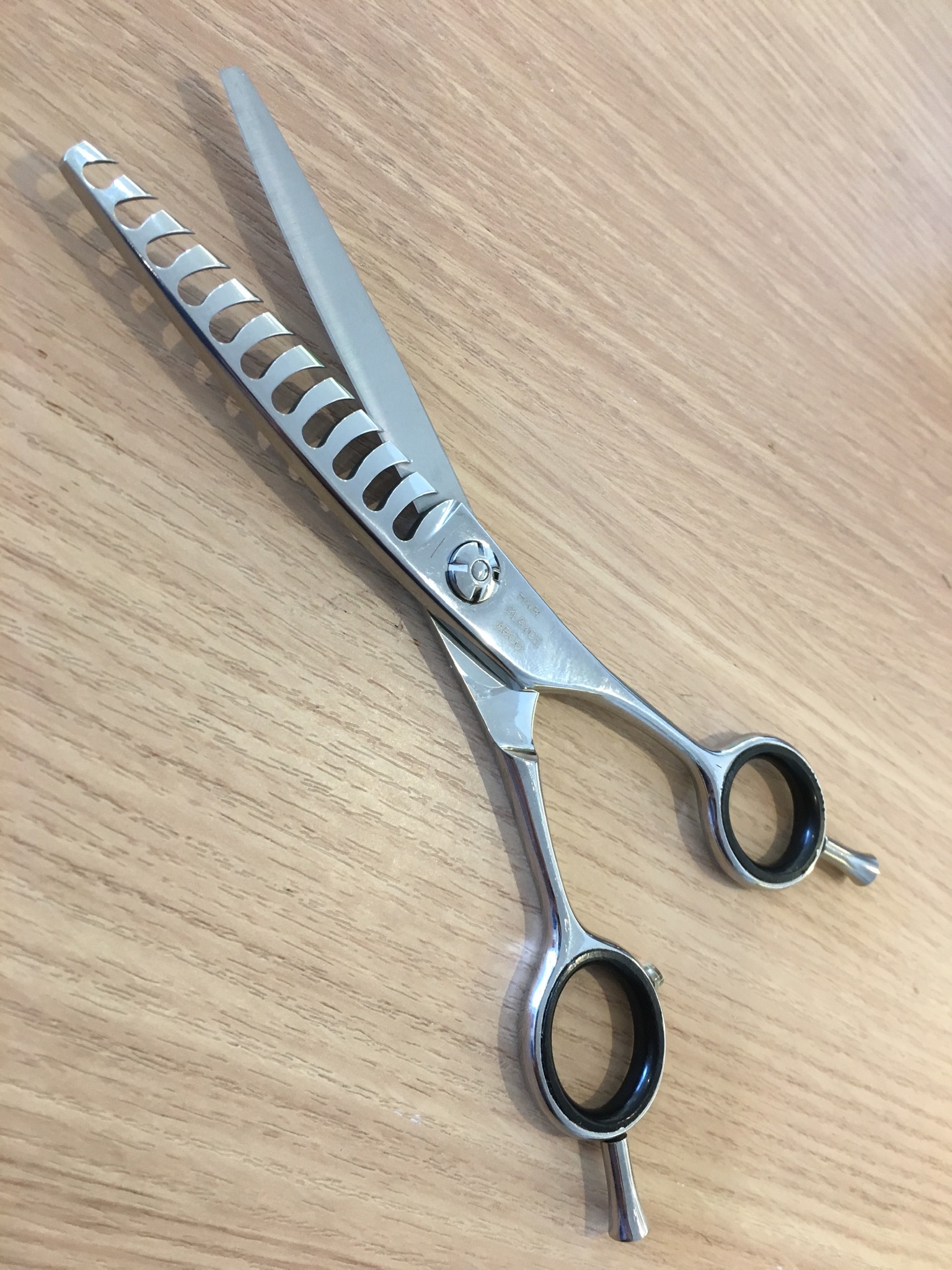 こういう、片方の刃が「櫛(くし)」みたいになってるハサミもあります♪