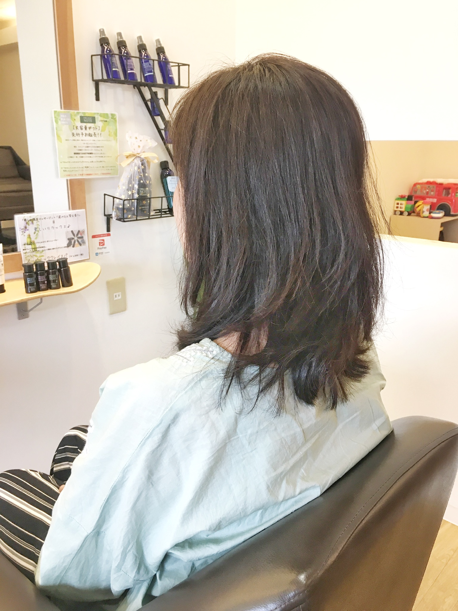 パーマが終わってシャンプーして、トリートメント付けて、