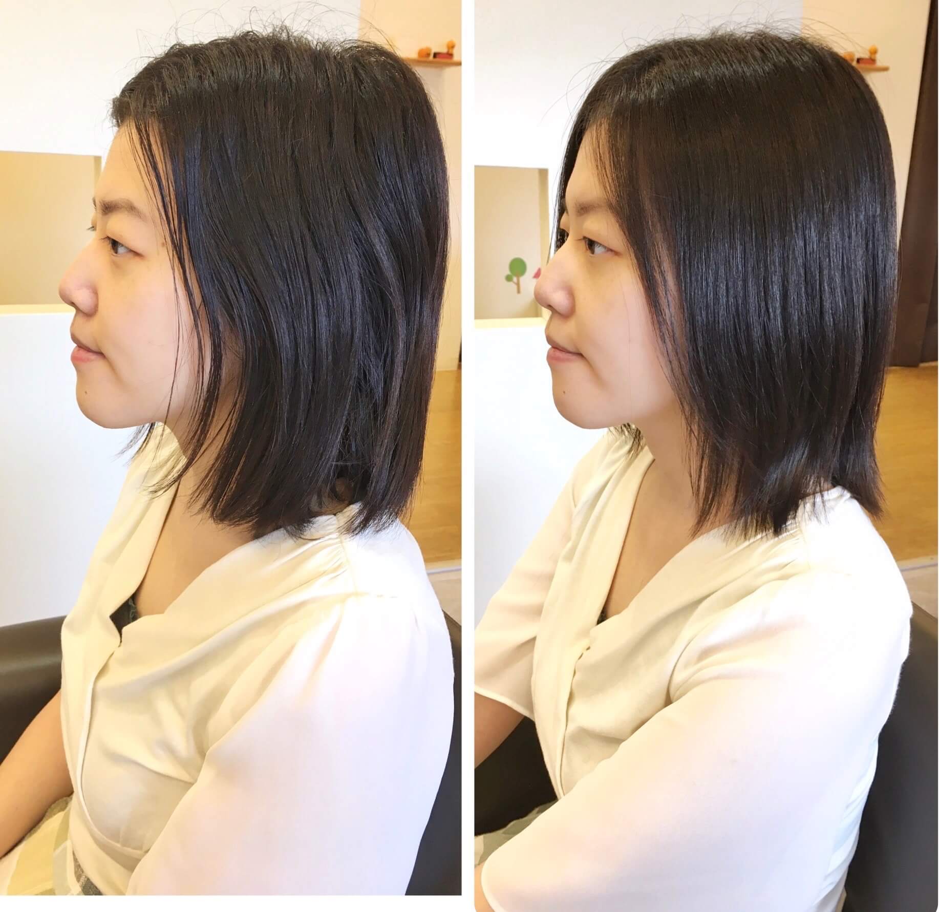 縮毛矯正とカットの合わせ技での、