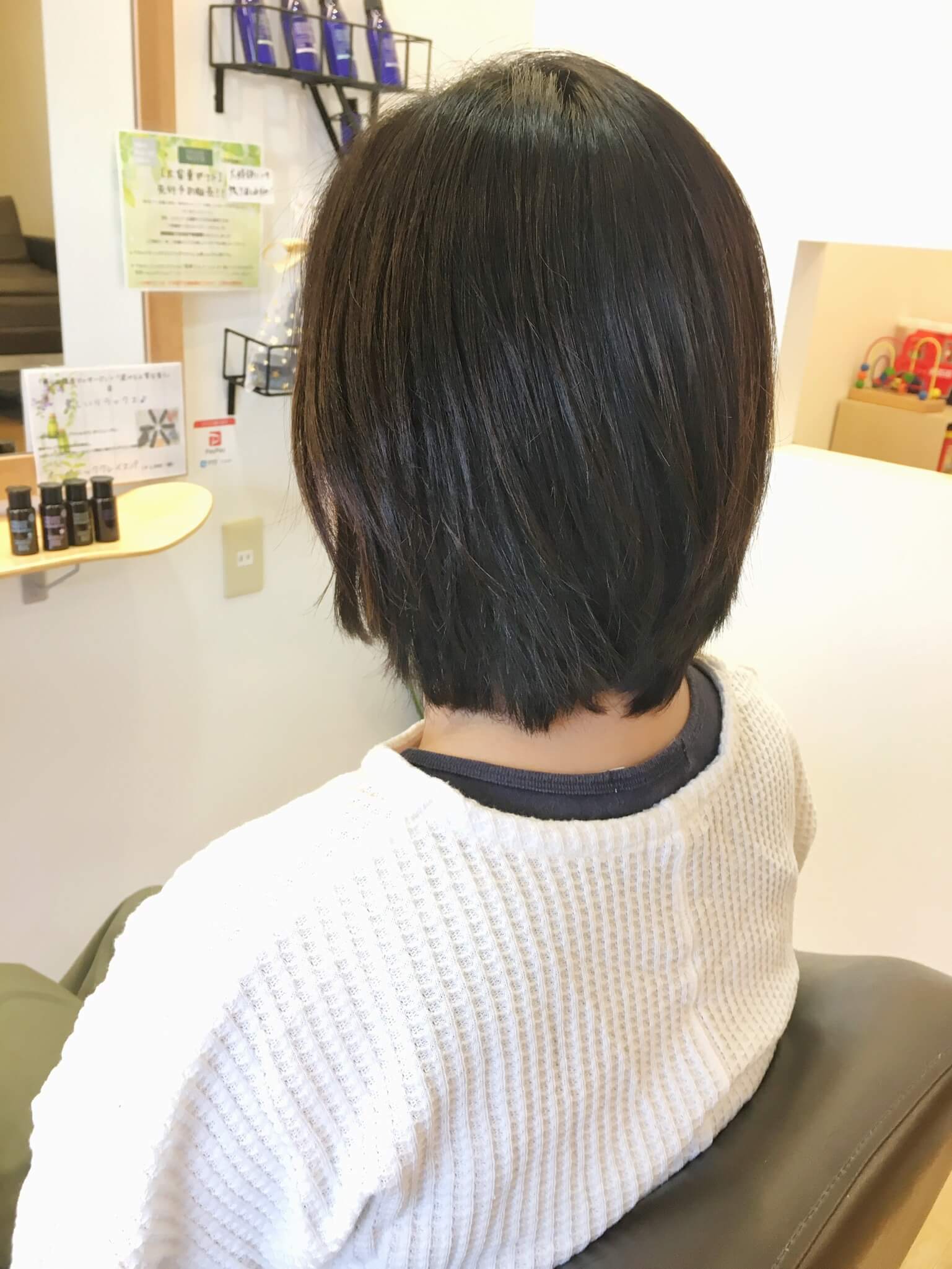 襟足は首に添いやすいように切ってるから、襟足がモタついたり、ハネる心配もナッシング(*≧∀≦*)