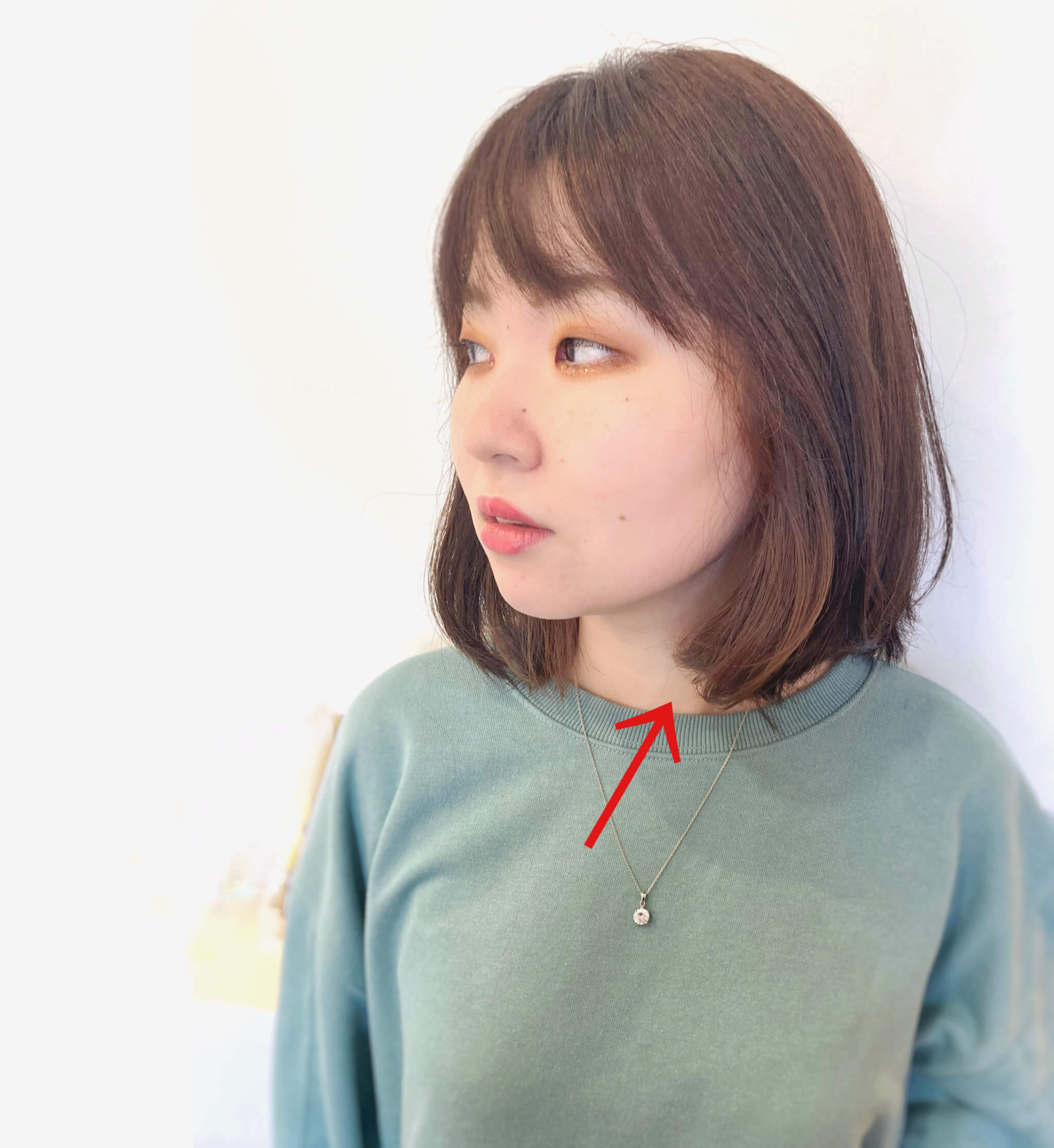 耳周りの髪、下ろした時に顔まわりにある髪を、