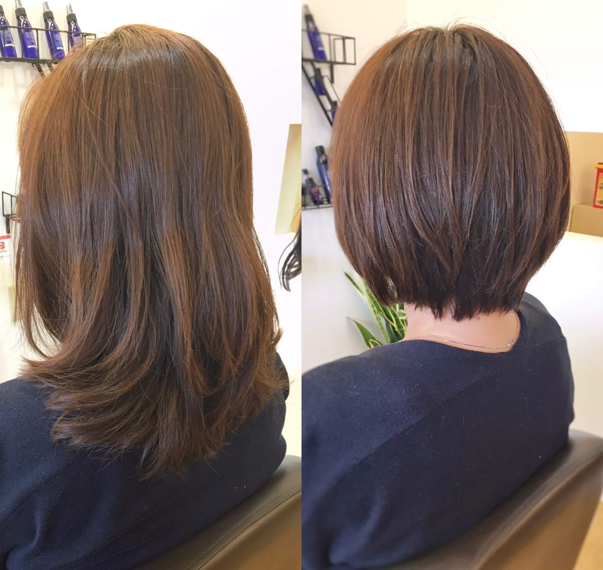 Oさん)「もう、ショートボブぐらいばっさりいこうかと。あとは似合うようにしてください♪」